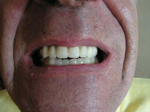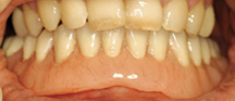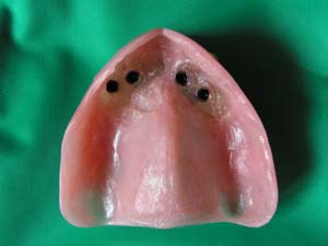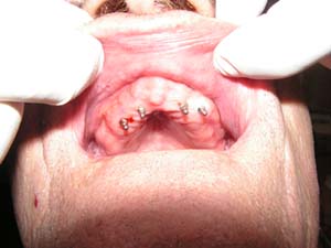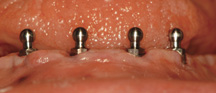 In the procedure titanium screws (implants) with integrated ball-tops are inserted into the jaw, where they will fuse into the bone. The procedure typically takes about an hour, and can be done under local anesthesia. Your existing denture is modified to sit comfortably over the implants during the healing phase. After the implants have healed, your denture is modified to snap onto the ball-tops. The denture will be secure until you remove it for cleaning. Simply apply upward pressure to the front of the denture with your thumbs to unseat the denture.