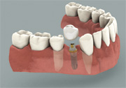Missing a tooth ? An Implant can replace that missing tooth in no time. Modern dental implants are precision devices, the most common type is a titanium screw that is anchored into the jawbone where it serves as post for a custom-made tooth crown. Once the crown is in place, you may not be able to tell it apart from your natural teeth.